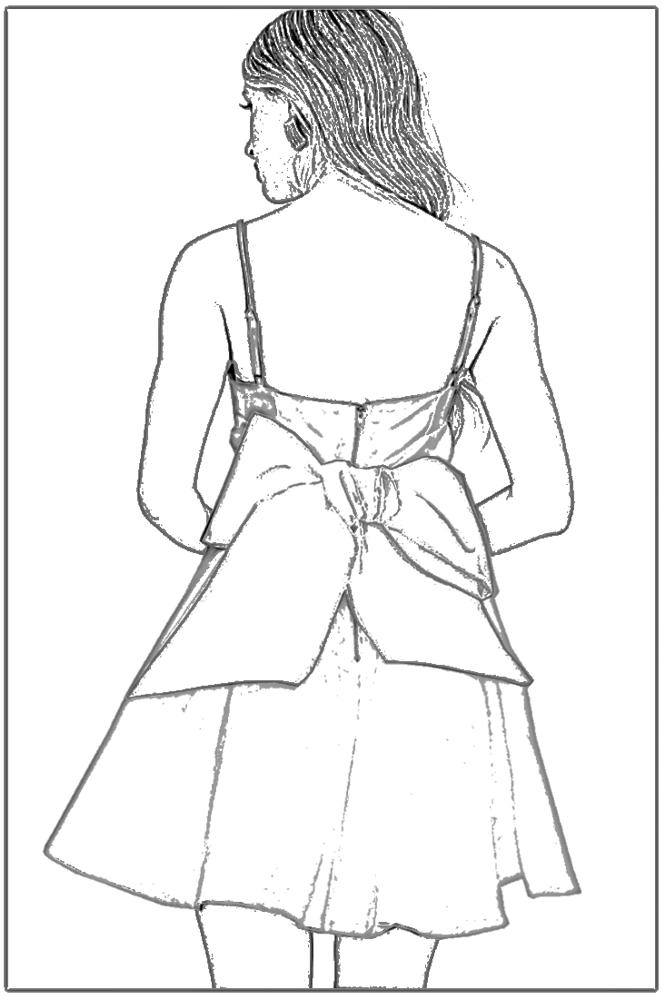 Kleurplaat van een mini Bruidsjurk met grote strik