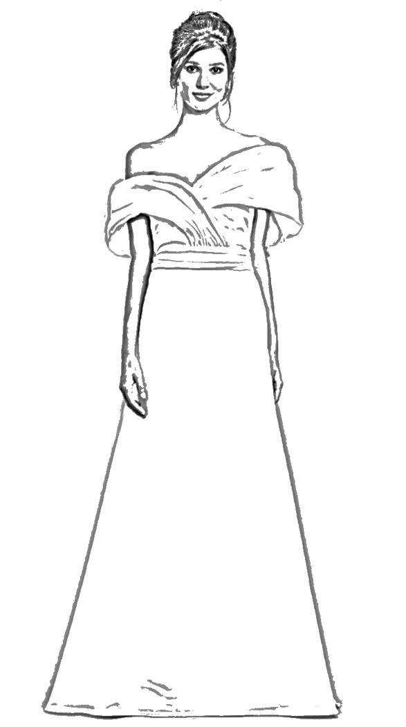 Kleurplaat van een Bruidsjurk met gevouwen zoom