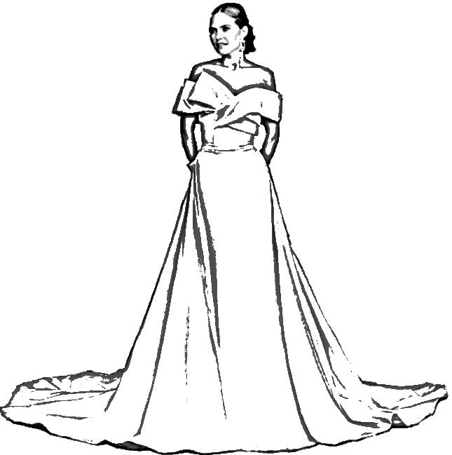 Kleurplaat van een Bruidsjurk met gevouwen detail