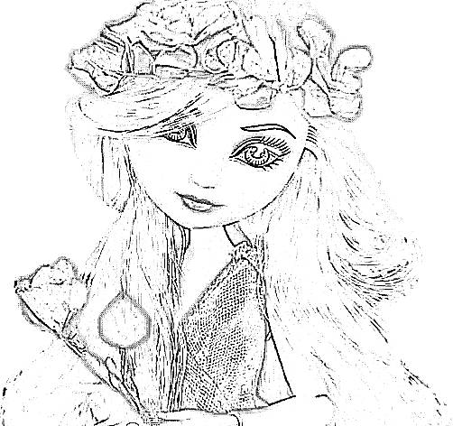 Kleurplaat: Modepop met een bloemenkroon