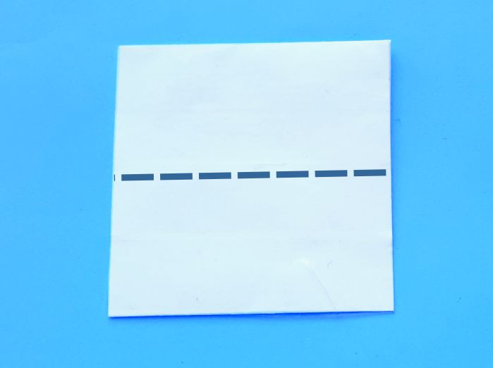 Vouw voor over de middellijn (=dubbelvouwen). Vouw daarna over de