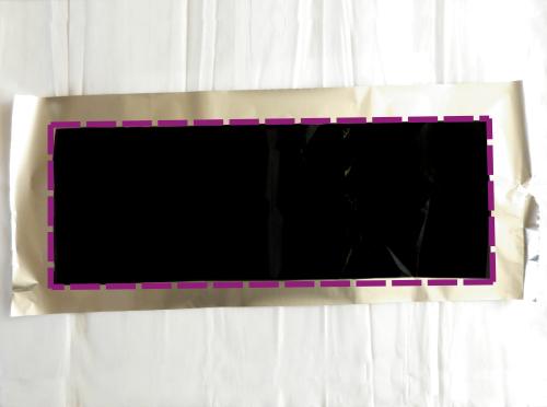 Knip een stuk aluminiumfolie van een rol en leg het onder het zwarte