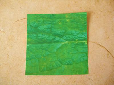 Alleen de voorkant van het vierkant velletje papier is gekleurd.