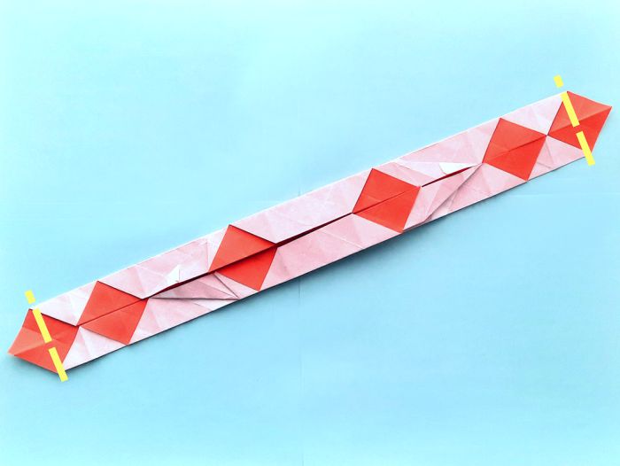 beide stukken nog een keer dubbel en ontvouw daarna het hele model.