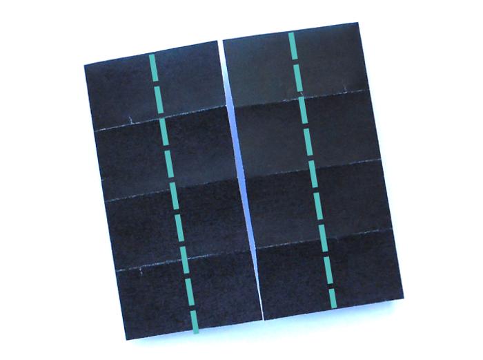 het rechter stuk in een rechte hoek en plak de randen aan elkaar