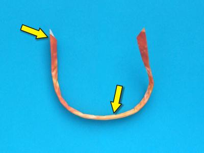 de pijl linksbovenaan. Plak dit uiteinde vast aan de onderkant