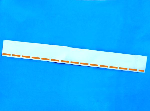 Vouw voor over de twee oranje lijnen, alle drie de stukken zijn even