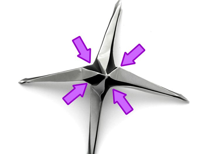 de twee lagen tussen de pijlen tegen elkaar aan en vouw dan de