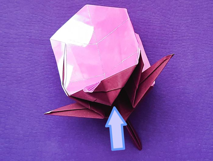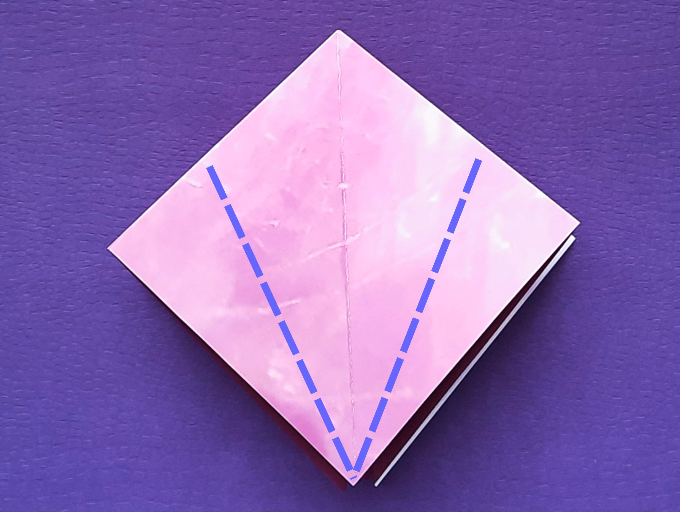 de randen naar buiten, zodat de paarse kant van het papier zichtbaar